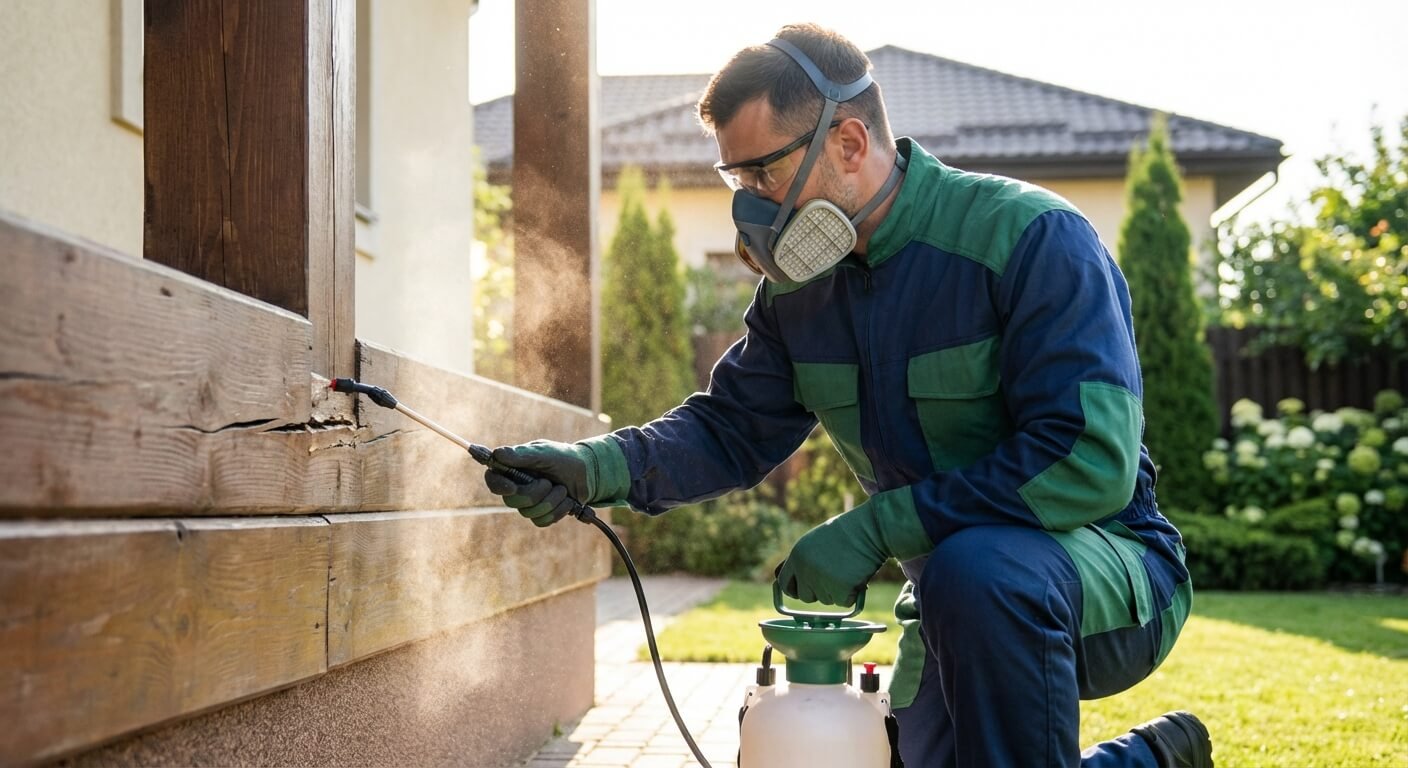 - Barreira Química: Cria uma zona de proteção ao redor da edificação, impedindo a entrada de cupins. É aplicada no solo e em estruturas de madeira.